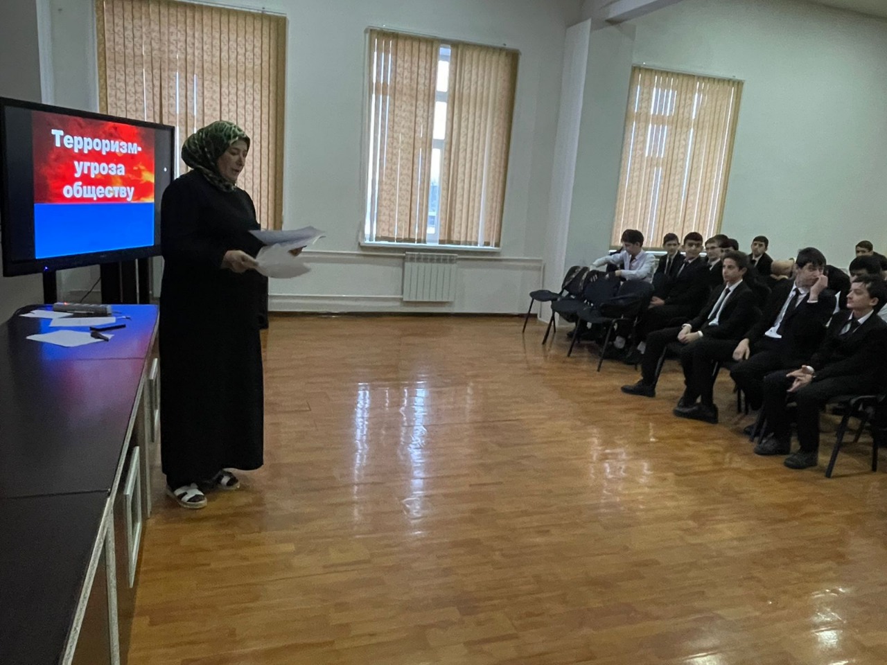 Провела беседу с учащимися соц-педагог Манкаева М.Л. Сформировать у обучающихся представление о терроризме. На тему «Терроризм угроза общества»