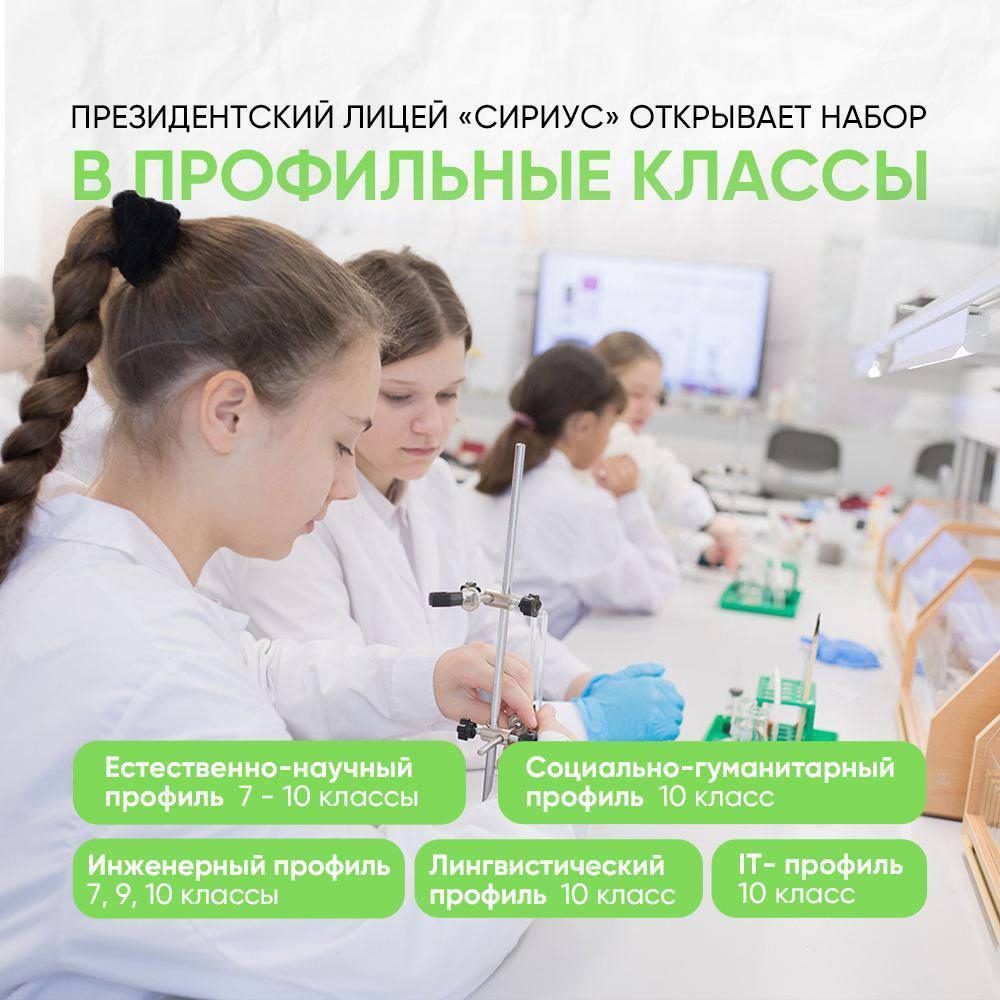 Открыт набор в бесплатные профильные классы Президентского Лицея «Сириус»
