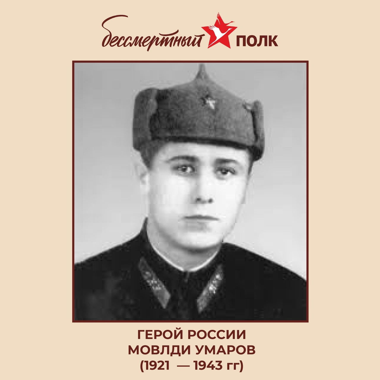 08.05.2024Накануне Дня Победа мы запускаем акцию «Бессмертный полк в госпабликах»!Делитесь в комментариях своими историями о героях – участниках Великой Отечественной войны. Это могут быть ваши родственники, односельчане или просто земляки. А мы расскажем сегодня о подвиге Мовлди Умарова из Новых Атагов.Мовлди Умаров ушел на фронт в возрасте 20 лет в составе батальона курсантов Ленинградского пехотно-командного училища. С 8 июля 1941 года он участвовал в Ленинградской оборонительной операции, а позже – в боях на Смоленском направлении.16 июля Умарову было присвоено воинское звание лейтенанта, а позже – старшего лейтенанта. 13 января 1943 года за образцовое выполнение заданий командования Мовлди Умаров награждён орденом Красного Знамени.Самым тяжелым и последним для героя стало сражение 11 января 1943 года. Рота Умарова держала оборону в районе села Скугорево Смоленской области. Противник, после интенсивной артподготовки, начал наступление на советские позиции. Командир роты Мовлди Умаров приказал подпустить фашистов поближе. По его команде солдаты начали в упор расстреливать наступающих.Первые цепи фашистов были почти полностью уничтожены. Но, используя численное превосходство, им удалось ворваться на позиции роты. Умаров, будучи дважды ранен, с перебитой рукой, повёл бойцов в контратаку. Прямо в траншеях разыгралась яростная рукопашная схватка, в которой старший лейтенант Умаров пал смертью храбрых. Противник был отброшен, потеряв в этом бою более 100 солдат.Спустя 53 года Указом Президента Российской Федерации от 16 мая 1996 года Мовлди Абдул-Вахабовичу Умарову было присвоено звание Героя Российской Федерации посмертно. Именем Мовлди Умарова названы улицы в Грозном и Новых Атагах. Имя Героя носит школа в его родном селе.