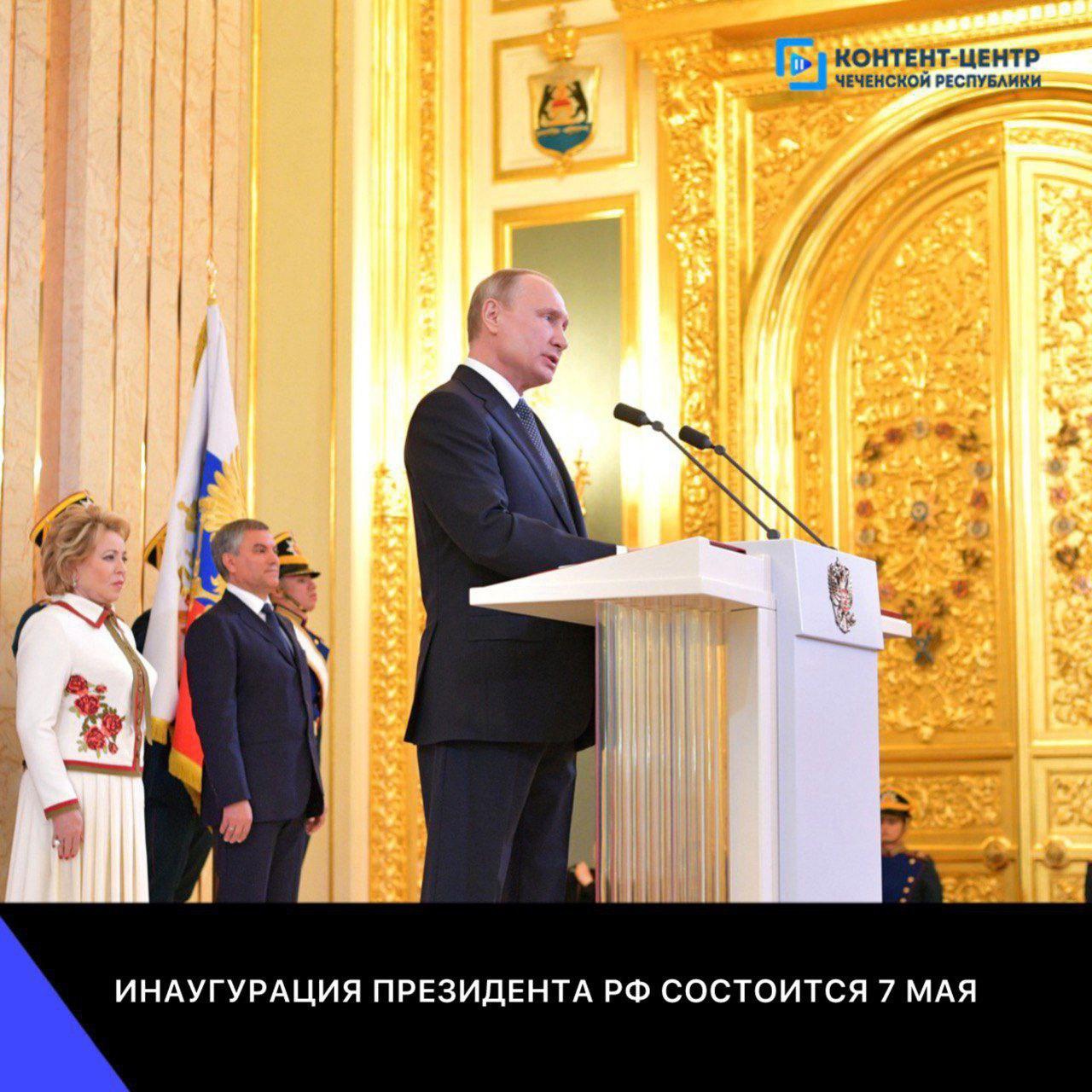 07.05.2024Инаугурация президента Российской Федерации проводится в торжественной форме и проходит в соответствии со статьёй 82 Конституции РФ.Согласно этой статье, новоизбранный президент в торжественной форме приносит присягу, текст которой зафиксирован в Конституции.При проведении инаугурации используются символы президентской власти, такие как штандарт и знак президента РФ, а также специальный экземпляр Конституции.До 2000 года инаугурация проходила в Кремлёвском дворце съездов (ныне Государственный Кремлёвский дворец), в последующие годы — в Андреевском зале Большого Кремлёвского дворца.В церемонии участвуют члены правительства, члены обеих палат парламента, руководители администрации президента, судьи Конституционного суда, члены Центризбиркома, представители дипломатического корпуса.