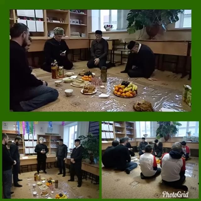 16.12.17г. В рамках реализации проекта ЕК духовно-нравственного воспитания подрастающего поколения,по случаю месяца Робби-уль-Авваль ,ознаменованием которого является рождение Любимца Аллах1аﷺ,Лучшего из людей -Пророка Мухаммада ﷺ,под руководством Педагога по ДНВ Берсанова С-Э.С. мужская половина коллектива и Активисты ФМОПД "Ахмат" МБОУ "СОШ #4 г.Урус-Мартан" прочитали Мовлид. После совершения Мовлида прочитали дуа,в котором просили благословения Аллах1а,Его милости и благодати в этот священный месяц для всей уммы Пророка Мухаммада ﷺ, Да воскресит нас Аллах1 и соберёт в Судный День под знаменем Своего Любимца Пророка Мухаммада ﷺ, Амин!