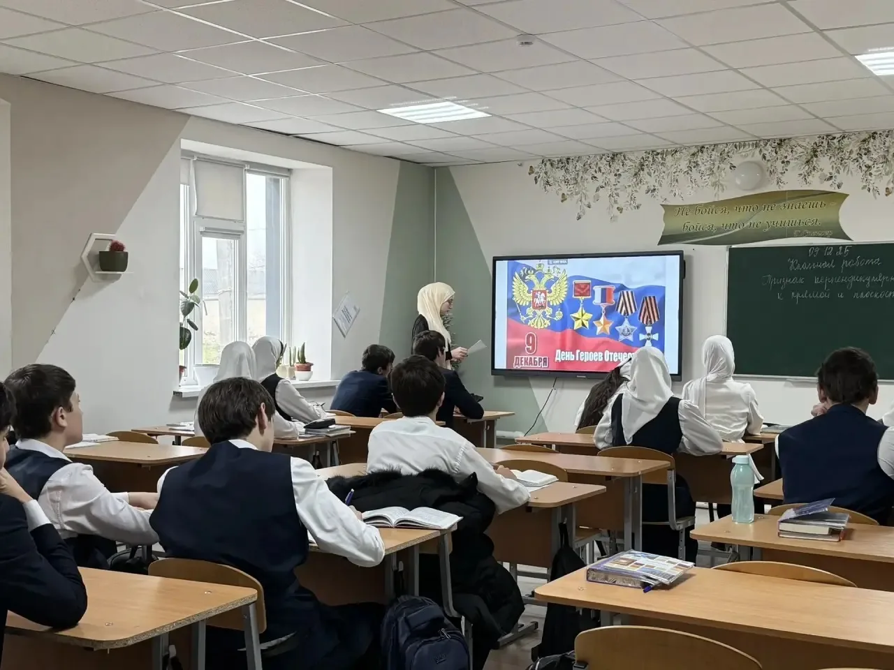 09.12.2025День Героев Отечества отмечается ежегодно 9 декабря. Эта памятная дата была установлена Федеральным законом от 28.02.2007№ 22-ФЗ «О внесении изменений в статью 1.1 Федерального закона «О днях воинской славы и памятных датах России». Этот праздник – дань высочайшего государственного и общественного уважения к тем, кто удостоен самых почетных государственных наград – званий Героев Советского Союза, Российской Федерации, орденов Славы и Святого Георгия. Под руководством заместителя директора по ВР и совместно с классными руководителями 1-11 классов, были проведены внеурочные занятия «Разговор о важном» на тему: «Россия - страна победителей»