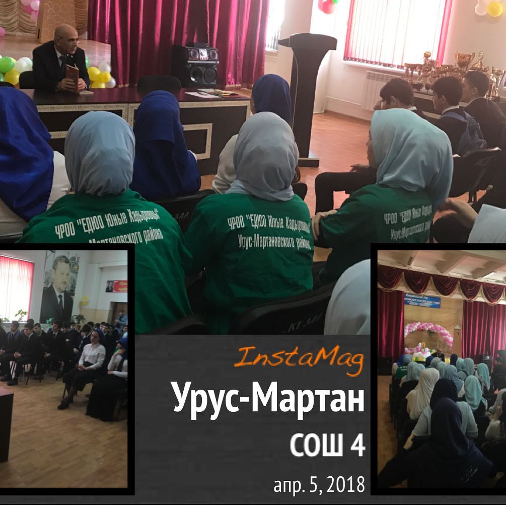 04.04.2018Активисты ФМОПД "Ахмат" с членами движения "Юные Кадыровцы" МБОУ "СОШ 4 г. Урус-Мартан" приняли участие в беседе судьи Урус-Мартановского городского суда Джабраилова И.Э. с обручающимися 9-11 классов на тему: "Приступление против собственности